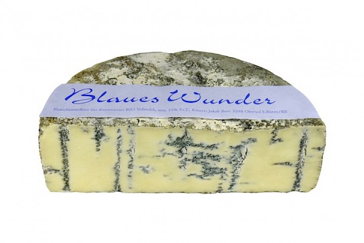 Das blaue Wunder kommt aus dem Berner Seeland, genauer von Oberwil bei Büren. Jakob Beer ist ursprünglich ein ausgezeichneter Emmentaler Käser, beweist jedoch sein vielseitiges Talent mit dieser Spezialität aus Biomilch. Im Gegensatz zu Italien und Frankreich haben Blauschimmelkäse noch keine lange Tradition in der Schweiz und verlangen vom Produzenten viel Erfahrung, Fingerspitzengefühl und Geduld zum pröbeln. Das Resultat ist mehr als überzeugend: Das subtile Aroma in dem crèmigen Käse ist eine schöne Antwort auf die grosse Blauschimmelauswahl unserer Nachbarländer. Am besten geniesst man den krümlig-schmelzenden Käse mit dem feinen Geschmack zu einem Glas Süss- oder Portwein und einem guten Stück Brot.